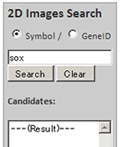 Type a gene symbol (either complete or partial) or Gene ID (complete only) into the search box and click "Search". If the query is initiated in the main page, you will be automatically directed to the search page. The entered letters can be deleted by clicking the "Clear". Following query, all the candidate gene symbols are listed under the search box based on the information you entered.